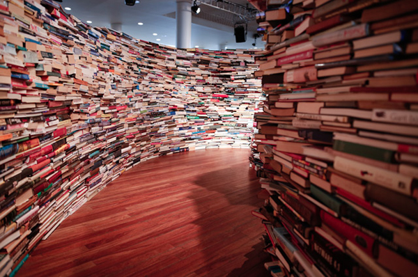 Estava dando minha voltinha diária no Garotas Nerds, procurando alguma novidade pra mostrar pra vocês e achei um post bem interessante. Os artistas brasileiros Marcos Saboya e Gualter Pupo com a ajuda de diversos voluntários, construíram um labirinto gigante formado apenas por nossos produtos amados de consumo: livros. Eles são de todos os tipos, usados e novos. O labirinto foi feito para a London 2012 Cultural Olympiad.